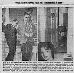 - ^ Korman, Seymour (December 2, 1963). "4 Face Quiz in Starlet's Slaying". Chicago Tribune. Archived from the original on July 16, 2012. Retrieved November 5, 2009.