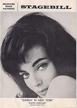 The legitimate stage was Kupcinet’s forte, particularly during the year 1962. From July 17 through July 22, she appeared in the Laguna Beach Summer Theatre production of "The Miracle Worker.”[2][11] She reprised her role as Kay in another production of "Father of the Bride," and also appeared in "Sunday in New York" in Chicago where her parents and brother lived.[2]