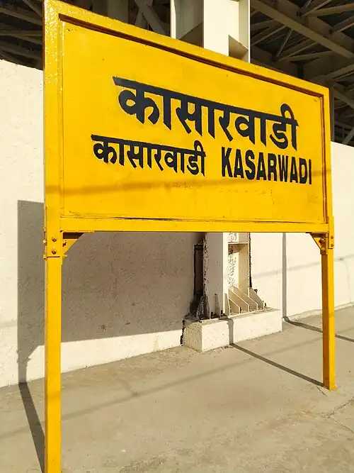 Kasarwadi railway station is a small suburban railway station of Pune Suburban Railway. The station is on the junction of Old Mumbai–Pune Highway and Pune–Nashik Highway. Station has two platforms and a foot overbridge. Nearby areas are Kasarwadi, Nashik Phata, Bhosari, Pimple Saudagar, Pimple Nilakh.