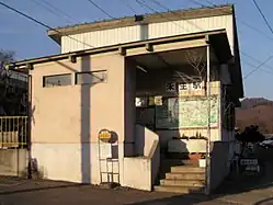 The station is staffed and consists of two side platforms serving two tracks, with the station building located on the south (down) side. Passengers cross the tracks via a footbridge.[1] It has toilet facilities.[1]
