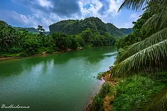 The river flows in the southwest area of Java with predominantly tropical monsoon climate (designated as Am in the Köppen-Geiger climate classification).[6] The annual average temperature in the area is 23 °C. The warmest month is August, when the average temperature is around 26 °C, and the coldest is January, at 20 °C.[7] The average annual rainfall is 3834 mm. The wettest month is December, with an average of 578 mm rainfall, and the driest is September, with 35 mm rainfall.[8]