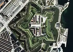 Kastellet (Danish pronunciation: [kʰæˈsteˀlð̩]; transl. "The Citadel") is a citadel located in Copenhagen, Denmark. It is one of the best preserved fortresses in Northern Europe. It is constructed in the form of a pentagon with bastions at its corners. Kastellet was continuous with the ring of bastioned ramparts which used to encircle Copenhagen but of which only the ramparts of Christianshavn remain today.