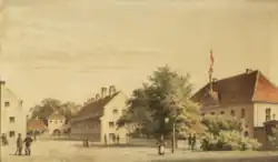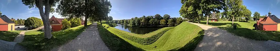 Since a fortified city needed secure supplies, including supplies of flour and rolled groats, in the event of siege, numerous windmills were constructed on the bastions.[4] In 1800, a total of 16 windmills were found on the ramparts of Copenhagen. The mill at Kastellet is the last which is still working, while another one, Lille Mølle at the Christianshavn Rampart, was transformed into a private home in 1915 and now survives as a historic house museum.