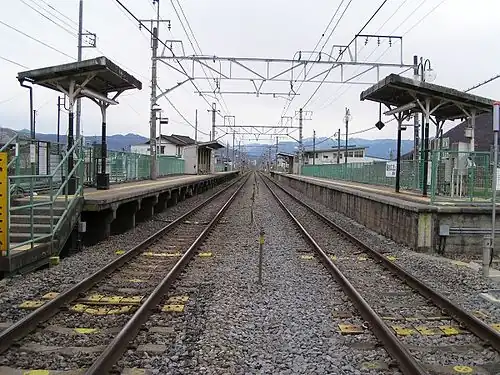 Kasugaichō Station (春日居町駅, Kasugaichō-eki) is a railway station of the Chūō Main Line, operated by East Japan Railway Company (JR East) in the Kasugai-Betsuden neighborhood of the city of Fuefuki, Yamanashi Prefecture, Japan.