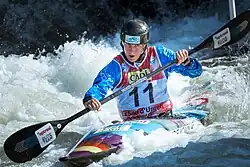Kudějová during the 2019 Canoe Slalom World Championships. |