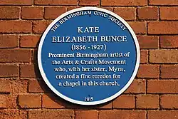 The daughter of John Thackray Bunce – a patron of Birmingham Museum & Art Gallery and editor of the Birmingham Post during its Liberal heyday – Bunce was born in Birmingham and educated at home. She studied at the Birmingham School of Art in the 1880s, first exhibiting artworks with the Royal Birmingham Society of Artists in 1874 and with the Royal Academy from 1887.[1] She was elected as an associate of the Royal Birmingham Society of Artists in 1888 and many of her works were displayed in a number of Birmingham churches.[2]