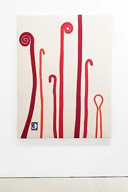In 2016 she was designated by ONUART and commissioned to work on a used UNHCR refugee tent provided to her, through their introduction, by the United Nations High Commission for Refugees (UNHCR).[7] The tent has since travelled and has been shown (as "Am I my brother's keeper?") in venues around continental Europe and the United Kingdom, including the Flagey Building in Brussels, the Iglesia del Seminario and the Hay Festival in Segovia,[12] the Chiesa Santa Rosalia in Palermo, the Migration Museum,[13] the School of Oriental and African Studies,[14] the Saatchi Gallery, and St Paul's Cathedral[15] in London, and the Edinburgh Festival.[16]