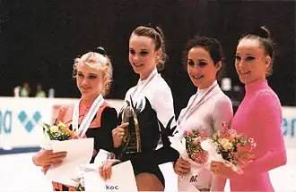 Kateryna Serebrianska[a] (born 25 October 1977 in Simferopol) is a Ukrainian former individual rhythmic gymnast. She is the 1996 Olympics gold medalist, the 1995 World All-around champion, the 1996 European All-around champion, and three time Grand Prix Final All-around champion.