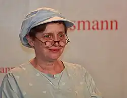 At the age of four, Thalbach was playing children's roles on stage, on television, and in films.[4] After the death of her mother in 1966, Helene Weigel took her under her care.[4] In 1967, she made her debut as the whore Betty (later the Polly) in Erich Engel's production of Brecht's Dreigroschenoper.[7][4] She completed her Abitur at the Max-Planck-Oberschule.[4][8] She obtained her stage maturity examination (Bühnenreifeprüfung) as a master student of Helene Weigel, Berliner Ensemble.[9] Thalbach played at the Berliner Ensemble and at the Volksbühne Berlin, where her father worked as artistic director.[4]