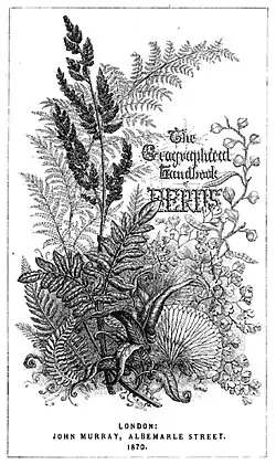 As a botanist, Katharine Lyell specialized in ferns and in 1870 published a volume on the geographic distribution of ferns worldwide. In her preface, she acknowledges a debt to William Jackson Hooker's unfinished compendium of ferns, Synopsis Filicum (posthumously published in 1868), but Lyell's book was the first to be organized around the geography of ferns rather than more usual taxonomic categories. She traveled to India with Henry, where she collected plants in several regions including the Ganges delta, and she corresponded with such eminent Victorians of her day as the scientists Alfred Russel Wallace and Charles Darwin and the missionary Harriette Colenso (who collected ferns for her).[2] Her fern collection is shared between Kew Gardens and The University of Reading Herbarium (RNG), while her other plants went to the British Museum.