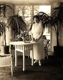As a woman of privilege and wealth, she sought social progress and progressive reform, as evidenced in her push for reforms in the tobacco factory. These included amenities such as hot lunches and water fountains to a nursery for working women.[21] In addition, she was an active member of the Young Women's Christian Association (YWCA) which provided educational and recreational opportunities for young working women, and served as President of the local Winston-Salem chapter in 1917.[22] During World War I, through the R.J Reynolds tobacco company, she made monetary contributions to the Red Cross to aid in shelter, food, and supplies overseas as well as formed a local chapter with several other prominent women.[22] She was also active in the American Fund for the French Wounded, donating supplies and money and reviewing monthly reports and balance sheets for the organization as well as the Woman's Committee, serving as state chairman for a sub-organization of this war time committee.[22] Outside of her extensive organizational donations, she donated to many religious causes, helping build churches and supporting missionary activities and programs.[22]