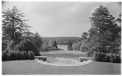 Reynolda, located in Winston-Salem, North Carolina, was the 1,067 acre estate of Katharine and R.J. Reynolds. Though unusual in its being in the South, the creation of Reynolda reflected the national American Country House movement. Wealthy Americans sought to escape the city for a rural estate with extensive farming and sporting facilities.[9] Reynolds was a subscriber to periodicals such as American Country Life.[10] Closely involved in both the design and construction, Katharine Reynolds envisioned a progressive, self-sustaining country farm and estate built upon the selected 1,000-acre land outside of Winston-Salem.[5][11] She hired engineering firm Buckenham and Miller to draw up the master plan, renowned architect Charles Barton Keen of Philadelphia to design the central house (called the "bungalow"), and Harvard-educated landscape architect Thomas Sears to plan the gardens.[5]