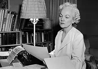 During the 1930s, 1940s and 1950s, Porter enjoyed a reputation as one of America's most distinguished writers, but her limited output and equally limited sales had her living on grants and advances for most of the era.[17]