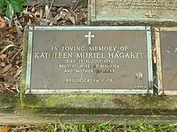 Kathleen Butler Hagarty died on 19 July 1972, aged 81.[5] She is buried in Macquarie Park Cemetery, Sydney.[37][14]