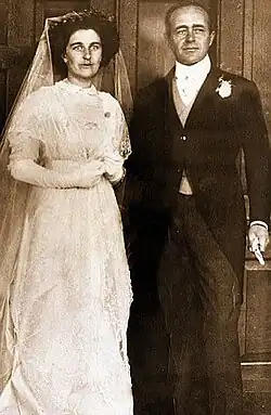 In October 1907 she met Captain Robert Falcon Scott at a tea party having briefly seen him at a lunch hosted by Mabel Beardsley several months earlier.[1] The two spent ten days together before he left London on Naval duties but within a month they had decided to marry.[1] Their wedding was on 2 September 1908, in the Chapel Royal at Hampton Court Palace with Rodin among the 150 guests.[1] The couple took a house on Buckingham Palace Road in London and in September 1909 their son Peter Scott, who became famous in painting and conservation, was born.[1]