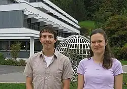 ![]() Karl Mahlburg and Kathrin Bringmann at Oberwolfach (2009) | |