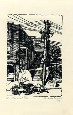 Kathrin Cawein (1895–1996) was an American printmaker known for her etchings. Her style was realist and her subjects were mainly landscapes and interiors.[1] Early in her career, her work received praise from one critic for its "adroit handling of color and good drawing — a technique that seems to express personal engaging conceptions."[2] Critics also considered her prints to be "striking"[3] and having a "high level of workmanship."[4]