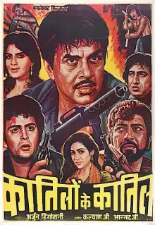 Katilon Ke Kaatil (transl. "A Murderer's Murderer") is a 1981 Indian Hindi-language action thriller film, produced and directed by Arjun Hingorani. This film stars Dharmendra (who previously appeared in Hingorani's Kahani Kismat Ki), Rishi Kapoor, Zeenat Aman, Tina Munim, Nirupa Roy, Shakti Kapoor and Amjad Khan. The music is by Kalyanji Anandji. The film is known for its hit music and several exploitation film gimmicks, including the appearance of Bruce Lee lookalike Bruce Le (capitalizing on the Bruceploitation trend) as well as a character called Reecha who resembles General Ursus from Planet of the Apes.