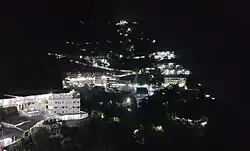 Katra or Vaishno Devi is a city and Tehsil in the Reasi district of the Indian union territory of Jammu and Kashmir. It is situated at the foot of the Trikuta Mountains, where the shrine of Vaishno Devi is located. Katra is located 24 km (15 mi) from the town of Reasi, 42 km (26 mi) from the city of Jammu and around 685 km (426 mi) north of the national capital New Delhi and is the base for pilgrims visiting the Mata Vaishno Devi Temple.
