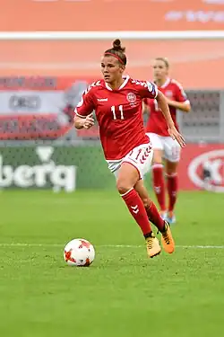 She has previously played for Arsenal in the FA WSL, LdB FC Malmö of Sweden's Damallsvenskan, Seattle Reign FC of the National Women's Soccer League as well as Odense Q and Brøndby IF of Denmark's Elitedivisionen.[2]
