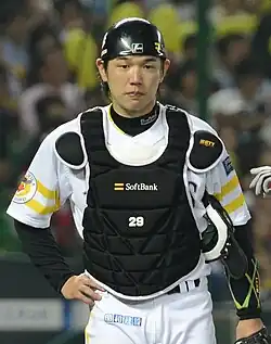 Katsuki Yamazaki (山崎 勝己, born August 16, 1982) is a Japanese former professional baseball catcher. He has played in Nippon Professional Baseball (NPB) for the Fukuoka Daiei Hawks / Fukuoka SoftBank Hawks and Orix Buffaloes.