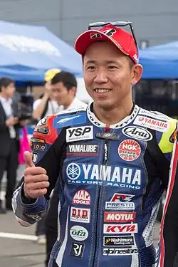 Katsuyuki Nakasuga (中須賀 克行, Nakasuga Katsuyuki; born 9 August 1981 in Fukuoka Prefecture) is a Japanese motorcycle racer.[1] He races a factory Yamaha YZF-R1 in the JSB1000 class of the All Japan Road Race Championship. He has won the Suzuka 8 Hours four times (2015, 2016, 2017, 2018) and the JSB1000 championship title twelve times (2008, 2009, 2012, 2013, 2014, 2015, 2016, 2018, 2019, 2021, 2022, 2023).
