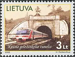 Kaunas railway tunnel (Lithuanian: Kauno geležinkelio tunelis) is one of the two railway tunnels existing in Lithuania and the only railway tunnel operating in the Baltic states. Passenger trains are operating between Vilnius and Kaunas through this tunnel. The length of the tunnel is 1,285 metres (0,803 miles), height – 6,6 metres, width – 8,8 metres. Kaunas railway tunnel was included into the Registry of Immovable Cultural Heritage Sites of the Republic of Lithuania in 1996.[1]