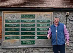 Kauto Star (19 March 2000 – 29 June 2015) was a French-bred National Hunt champion thoroughbred racehorse trained by Paul Nicholls in Somerset and owned by Clive Smith. He was known for his versatility and longevity, being the only horse ever to be top rated over 2 miles, 2.5 miles and 3 miles in the same season. He is also the first horse ever to win a Grade 1 race in six consecutive seasons, which he extended to seven. His Racing Post rating of 192 is the highest ever awarded to a National Hunt horse since those ratings began in 1987. He won the Cheltenham Gold Cup twice, in 2007 and 2009, becoming the first horse to regain the cup. In 2009, he beat Denman by thirteen lengths, after losing to the same horse by seven lengths the previous year.[1] Kauto Star tried for three more years to win the race again, but the best placing he could achieve was third in 2011.[2] He also won the King George VI Chase a record five times. Kauto Star was one of the most successful steeplechasers of any era: he finished his career with a National Hunt record of £3,775,883 in earnings, £2,375,883 of which was winner's prize money,[3] a £1,000,000 bonus for the completion of the 2006/2007 Stayers Chase Triple Crown and a £400,000 reward for heading the BHA Table of Merit in the 2006/2007 season.