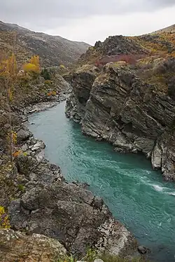 The Kawarau Gorge is a major river gorge created by the Kawarau River in Central Otago, in the South Island of New Zealand. The towns of Queenstown and Cromwell are linked by State Highway 6 through the gorge.[1]