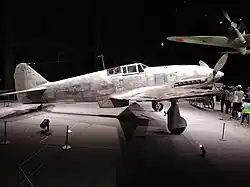 The Kawasaki Ki-61 Hien (飛燕, "flying swallow") is a Japanese World War II fighter aircraft. Used by the Imperial Japanese Army Air Service, it was designated the "Army Type 3 Fighter" (三式戦闘機).[2] Allied intelligence initially believed Ki-61s were Messerschmitt Bf 109s and later an Italian Macchi C.202, which led to the Allied reporting name of "Tony", assigned by the United States War Department.[3] The design originated as a variant of the Kawasaki Ki-60, which never entered production. The Ki-61 became the only mass-produced Japanese fighter of the war to use a liquid-cooled inverted V engine. Over 3,000 Ki-61s were produced. Initial prototypes saw action over Yokohama during the Doolittle Raid on 18 April 1942, and continued to fly combat missions throughout the war.[4][5]
