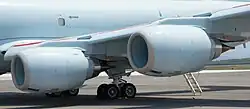 The Kawasaki P-1 is a purpose-built maritime patrol aircraft equipped with four engines. The P-1 is powered by four podded IHI F7-10 turbofan engines underneath the low-set wings.[17] The four-engine low-wing loading design, results in a flight profile with better maneuverability and stability at low-speed, low-altitude flight and allows the aircraft to continue its mission in the event of a single engine failure. As well as greater operational survivability, the high-bypass engines provide for quiet, fuel-efficient operation.[17] The P-1 has reduced transit times in comparison to turboprop-powered competitors.[24] The turbofans are quieter, making it more difficult for submerged submarines to detect it acoustically.[22]