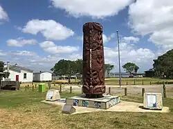 In 2016, a 5 m (16 ft) tall pou maumahara (remembrance pillar) was put up at Omimiti Reserve, behind the museum. Te Kuiti Stewart began carving it in 2014, from a Pureora Forest totara. It represents 150 years of Kīngitanga on one side and the Elizabeth Henrietta's 1824 arrival, on the other. At night it is floodlit, with coloured LED lights inside.[45]
