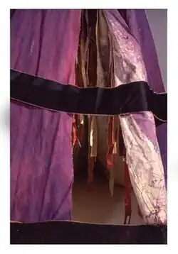 In another personal search, Walkingstick created Messages to Papa in 1974 to better understand the conflicted feelings that she had for her father. The work was a stereotypical image of a Native American dwelling, the tipi, although it was not a Cherokee structure. She used the image, as a symbol of Native Americans to people of non-native descent. In the middle of the work she hung a Cherokee language translation of the Lord's Prayer and a letter to her deceased father.[5]
