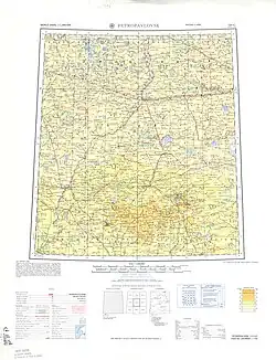 Negotiations on border delimitation took place from 1999 to 2005, with a final treaty being approved in Moscow by Presidents Vladimir Putin and Nursultan Nazarbayev on 18 January 2005.[27][28] The treaty entered into force on 12 January 2006.[27] On-the-ground demarcation started in July 2007, with a series of pillars marking the frontier beginning to be erected from May 2009.[27][29] When the border became international in 1991, one branch of the Trans-Siberian Railway was interrupted by two border crossings at Petropavl. In 2017, Russia and Kazakhstan agreed to create a transit (corridor) without border controls.[30]
