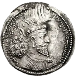 Silver coin with the image of Ardashir II, minted in Bishapur -