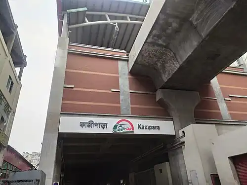 Kazipara (Bengali: কাজীপাড়া, romanised: Kajeepara) is a metro station of the Dhaka Metro's MRT Line 6. This station is located in Kazipara, Dhaka, Bangladesh. The station commenced operation from 15 March 2023.[2]