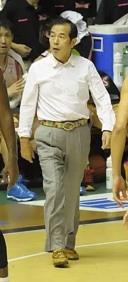 Kazuo Nakamura (中村 和雄, Nakamura Kazuo; born December 4, 1940) is a former professional basketball head coach for Hamamatsu, Akita and Niigata and a former college basketball head coach for Akita Keizaihoka University in Japan.[1][2] Nakamura always said to players, "Play basketball with all your heart."[3] He admires Mike Krzyzewski and Bob Knight. Nakamura also served for the San Antonio Silver Stars as a scout in Asia. He currently teaches amateurs in Akita prefecture.