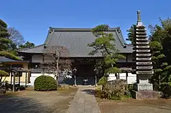 Kazusa Kokubun-ji (上総国分寺) is a Buddhist temple located in the city of Ichihara, Chiba, Japan. It belongs to the Shingon-shu Buzan-ha sect, and its honzon is a statue of Yakushi Nyōrai. It is the provincial temple ("kokubunji") of former Kazusa Province. The present temple is of uncertain foundation, but claims to be the direct descendant of the original Nara period kokubunji temple which fell into ruins sometime in the Muromachi period. The Nara-period temple ruins were designated a National Historic Site in 1929, with the area under protection expanded in 1979 due to additional archaeological finds.[1]
