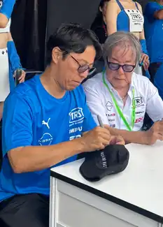 ![]() Hoshino (right) and his son at the 2025 Super GT Malaysia Festival | |