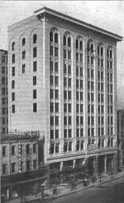 A third of office space in the building was rented prior to opening in February, 1911,[5] and most of the offices were rented by April of that year.[6] Early tenants of the building included clothiers Gardner & Adams Co.[7] and Rowe & Kelly,[8][9] and the building included what was billed as "the most beautiful buffet in the United States," the Mecca.[10]