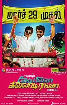 The film was officially announced on June 2012 with the title Kedi Billa Killadi Ranga;[6] it was named as such to reflect the duality of the film with its protagonists and female leads, while also named after Rajinikanth's films Billa (1980) and Ranga (1982).[7][8] Pandiraj stated that the film is about the aspirations and dreams of youngsters living in the small towns and villages of Tamil Nadu, who further added that "with TV penetrating even the interiors of India, aspirations and dreams of young men in the villagers have changed. They have started dreaming about living like the city guys. The film is about all that and more."[8] In an interview to The Hindu, he described that though the film's theme is thought provoking, it features "several light moments to entertain the audience" as watching a Charlie Chaplin film.[1]