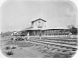 The station was built and owned by the Nederlandsch-Indische Spoorweg Maatschappij (NIS) and was opened on 19 July 1868. NIS was planning to build two railway lines from Semarang, with one going to the Vorstenlanden and the other one to the military town of Ambarawa. The Kedungjati–Gundih–Solo segment of the Vorstenlanden line was operational on 1 September 1869,[2][3] with the line was officially opened on 10 February 1870.[4][5] The line to Ambarawa was opened on 21 May 1873.[4][2][3]