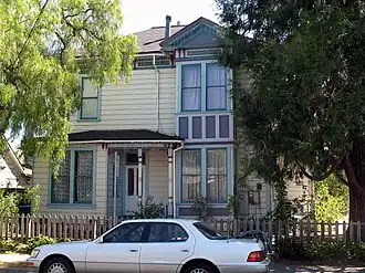 The Kee House is a historic house located at 2310 Yale St. in Palo Alto, California. Built in 1889, it is one of the oldest houses in Palo Alto and the oldest surviving building from Mayfield, a village that predated Palo Alto and was later annexed into the city. The house was one of the first built in the College Terrace tract, a middle-class residential area named for its proximity to Stanford University. The two-story house has an Italianate design with Eastlake elements. The front and side porches feature carved brackets and turned posts; the rear entrance originally had a similar porch. The hip roof features double brackets and a frieze below its eaves.[2]