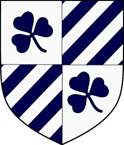 ![]() Coat of arms of Keenan Hall Arms: Quarterly 1st and 4th a shamrock azure 2nd and 3rd azure four bends sinister argent | |