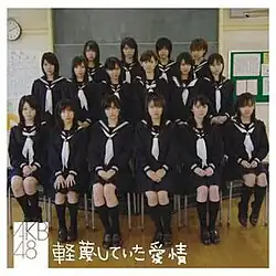 "Keibetsu Shiteita Aijō" (軽蔑していた愛情; "Scorned Love") is Japanese idol group AKB48's fifth single, and the third major single released through DefSTAR Records, on April 18, 2007.[1] The title track was sung with 16 members, 14 of whom appeared on the previous single, "Seifuku ga Jama o Suru".[2]