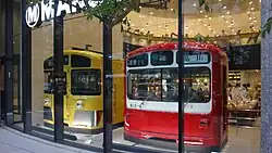 The cab end of former car DeHa 812-6 is preserved inside the Maruzen Ikebukuro bookshop in Toshima, Tokyo. Built in November 1979 by Kawasaki Heavy Industries, and originally numbered 812-3, it was renumbered 812-6 in August 1986 following reforming as a six-car unit. It was withdrawn in December 2015, and moved to the ground floor of the Maruzen Ikebukuro bookshop building in March 2017, while still under construction.[5]