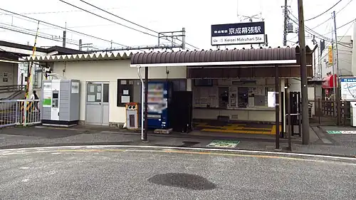Keisei Makuhari Station (京成幕張駅, Keisei Makuhari-eki) is a railway station operated by the Keisei Electric Railway located in Hanamigawa-ku, Chiba Japan. It is 4.0 kilometers from the terminus of the Keisei Chiba Line at Keisei-Tsudanuma Station.
