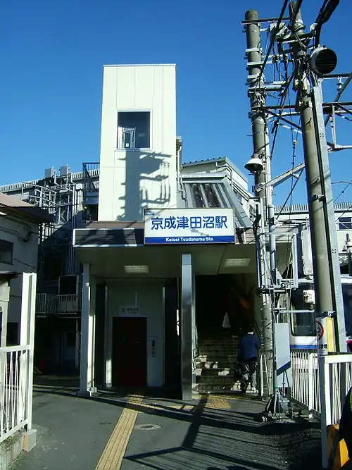 Keisei Tsudanuma Station (京成津田沼駅, Keisei Tsudanuma-eki) is a junction passenger railway station in the city of Narashino, Chiba Prefecture, Japan, operated by the private railway operator Keisei Electric Railway.
