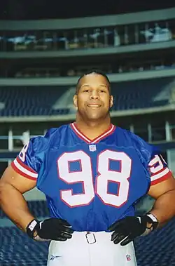 Signed by the New York Giants in 1988, Davis only played in a few preseason games before a knee injury ended his professional football career.,[2][5] Despite his abridged career, Davis was one of the strongest players on the team, bench-pressing 515 pounds and leg-pressing 1,800 pounds.[4]