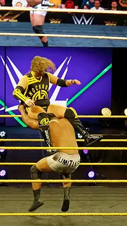 Prior to officially signing with WWE, Lee received a tryout in 2008, although this did not result in him being hired.[31] He appeared as an extra on the March 30, 2009 episode of Raw, playing a security guard.[32][33] On April 5, 2018, during WrestleMania Axxess weekend, Lee made an appearance for NXT, defeating Kassius Ohno.[34] On May 1, it was announced that Lee had signed a contract with WWE.[35] Lee appeared in attendance for NXT TakeOver: Chicago II on June 16.[36] On the August 8 episode of NXT, Lee made his televised in-ring debut for WWE, defeating Marcel Barthel.[37] Throughout the rest of 2018, Lee wrestled sporadically on NXT, defeating the likes of Luke Menzies,[38] Kona Reeves,[39] but losing to Lars Sullivan.[40]